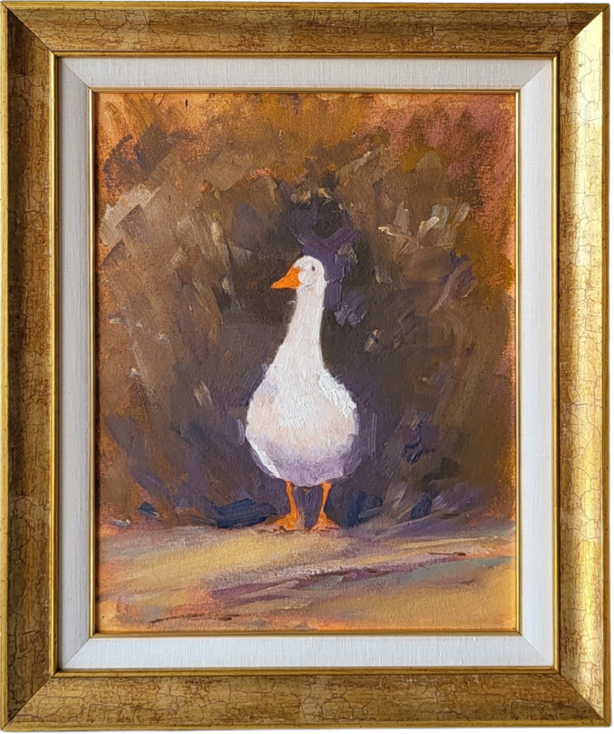 The painting reveals Lorraine’s humour and imagination, combining bold brushstrokes and lively colour to give Young Ned personality and presence. She later reflected that she “thoroughly enjoyed the activity” and found the goose “very interesting,” adding that the piece simply made her feel happy.